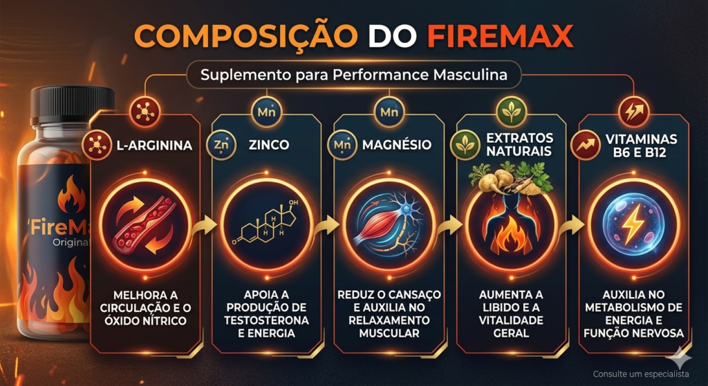 O FireMax suplemento é um composto nutracêutico desenvolvido com tecnologia de ponta para atuar como um suplemento para performance masculina de alto rendimento. Diferente de medicamentos sintéticos, sua base é 100% natural, o que o torna um excelente suplemento para libido masculina sem os efeitos colaterais comuns de farmácia.